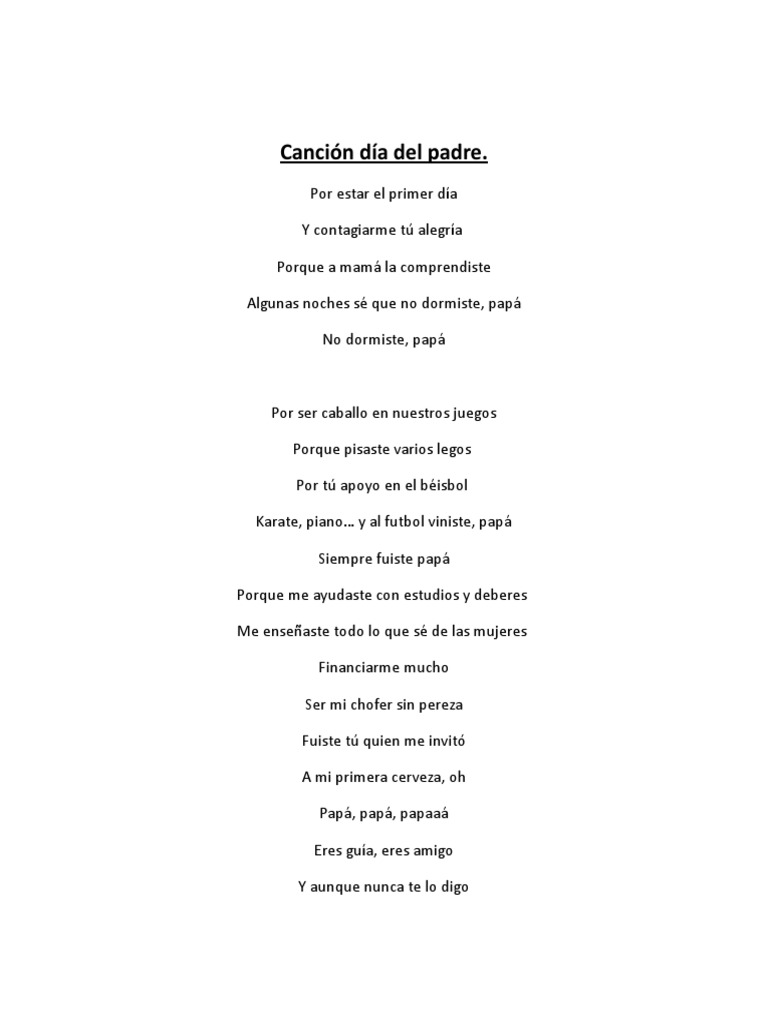 Canción Para El Día Del Padre En Letra / Cancion Para El Dia Del Padre Para Papa Youtube Canciones Papa Dia Del Padre : Letras de canciones dedicadas a los padres.